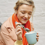Attention lunch pot lovers! Would you like to be able to take a warming soup to work or enjoy your yoghurt and fruit on the train? Then we're sure you'll love this handy solution: the Ellipse folding spoon in Nordic denim can be folded in half and stored away in the top compartment of your lunch pot! Now you can keep your spoon and lunch pot together, and you'll never have to dig out that sticky spoon from the bottom of your bag again! It comes with a handy case, so you can also store your spoon separately. It folds out with a simple click. Just click and tuck in! Once you're back home, you can put everything in the dishwasher, so it's ready to go for your next meal. Bonus feature: the spoon comes in the same colour as your favourite lunch pot.