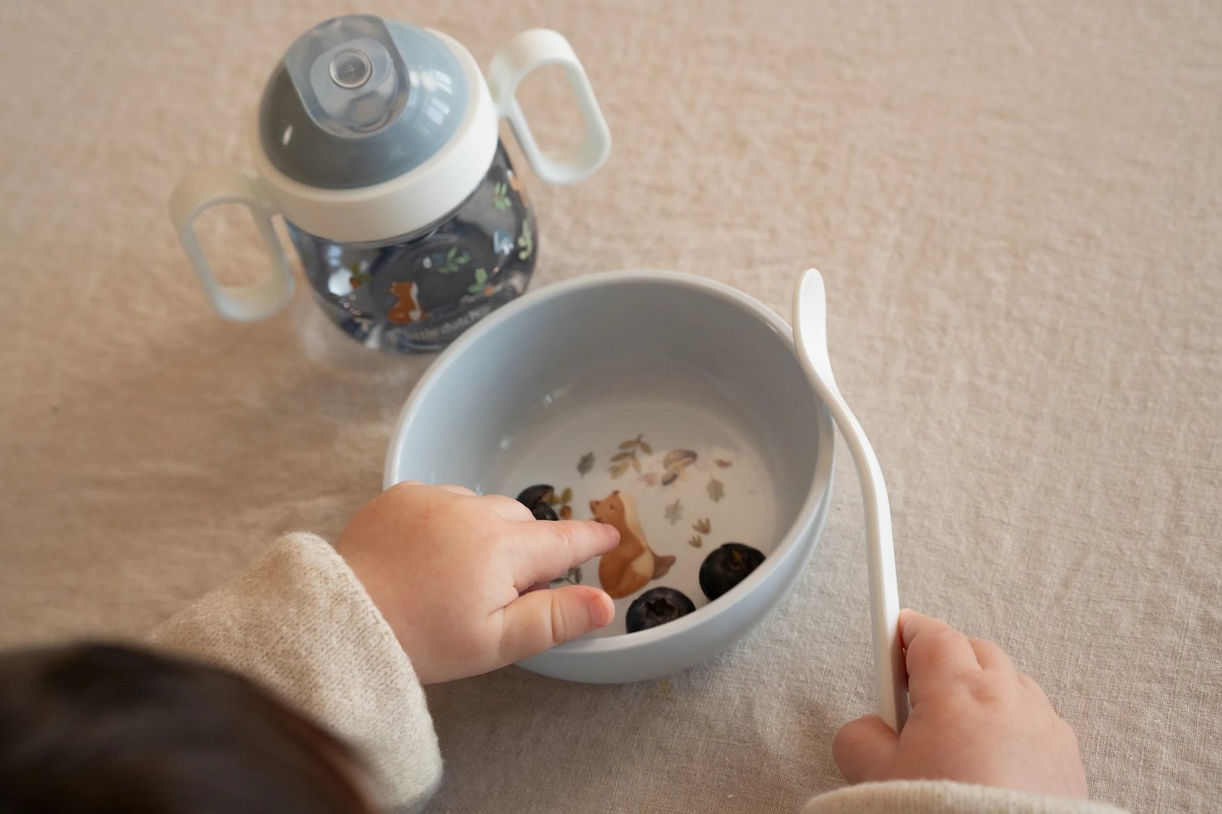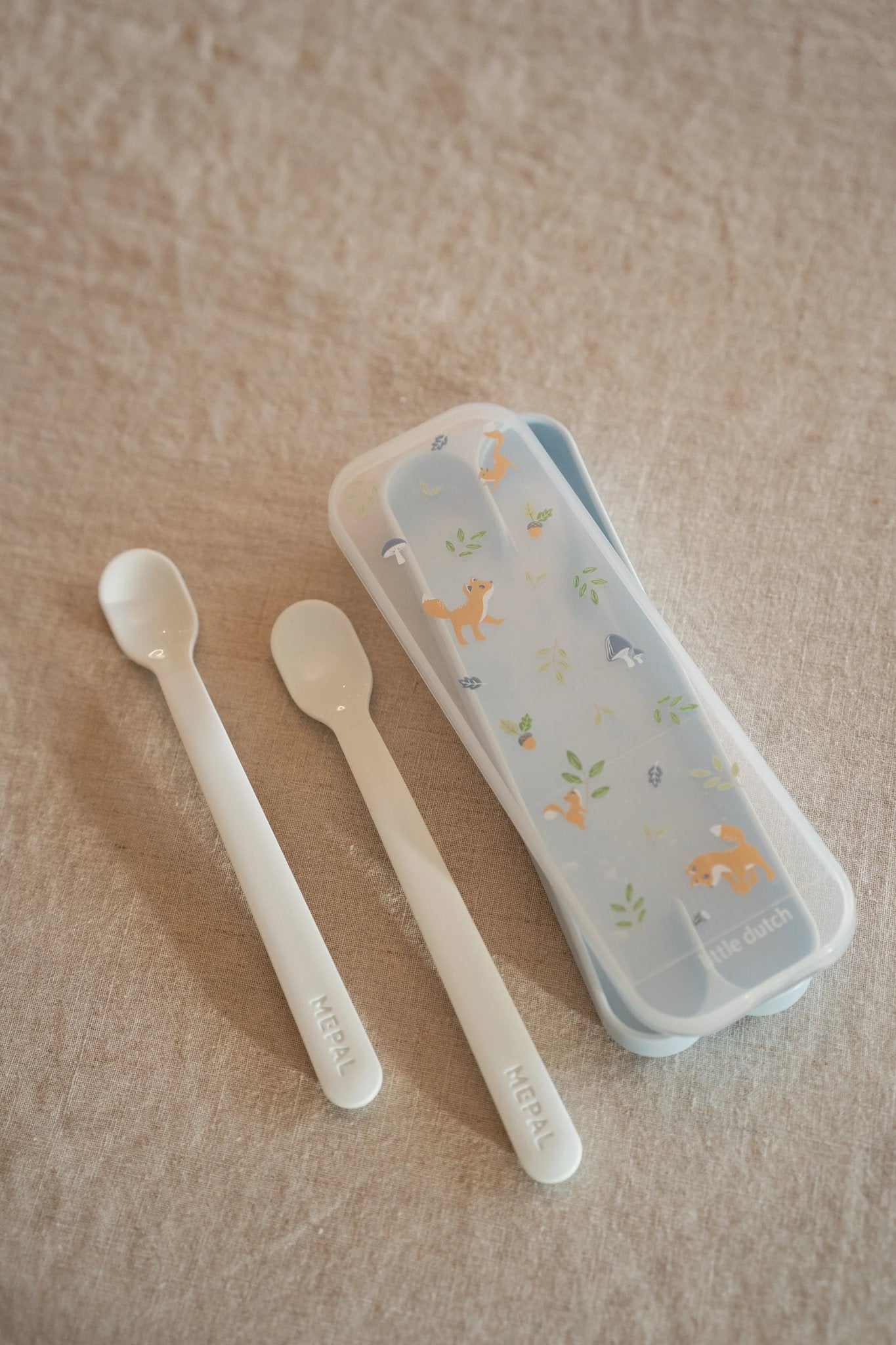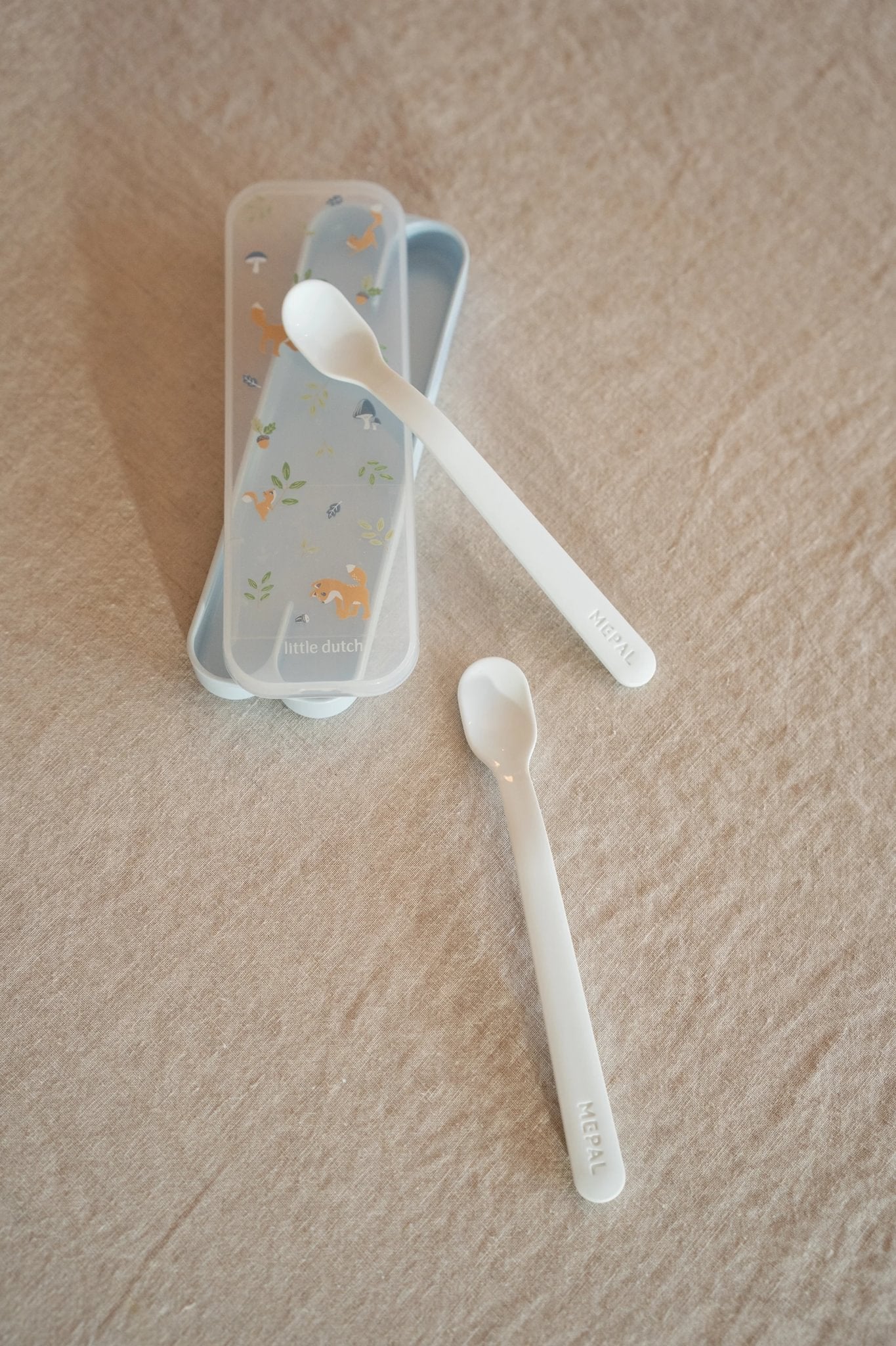 Especially for hungry little tots, there is now the baby spoon Mepal Mio in Forest Friends. The spoon comes as a set of two in a handy storage box. So easy to take with you. The baby spoon is narrow and shallow, making it easy to eat even for toddlers. Thanks to the long handle, you can get even the very last bit out of a jar of baby food. The spoons simply go in the dishwasher after use and are of course BPA-free.