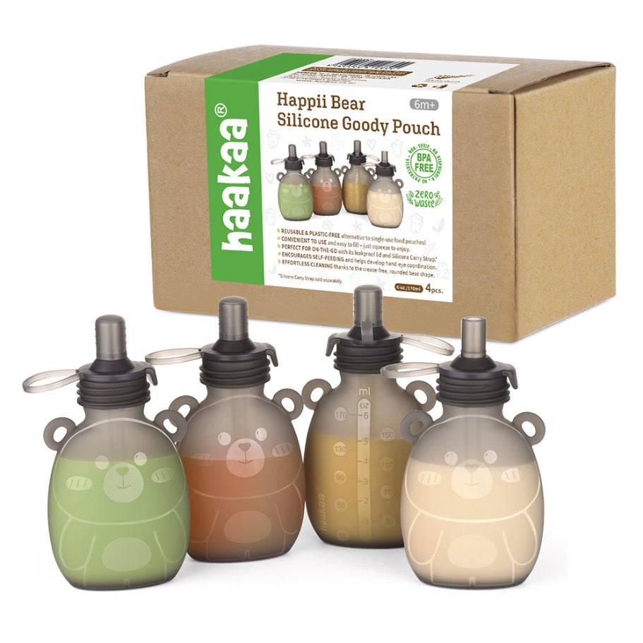 Haakaa Happii Bear Silicone Goody Pouch, 170ml (4-pack)