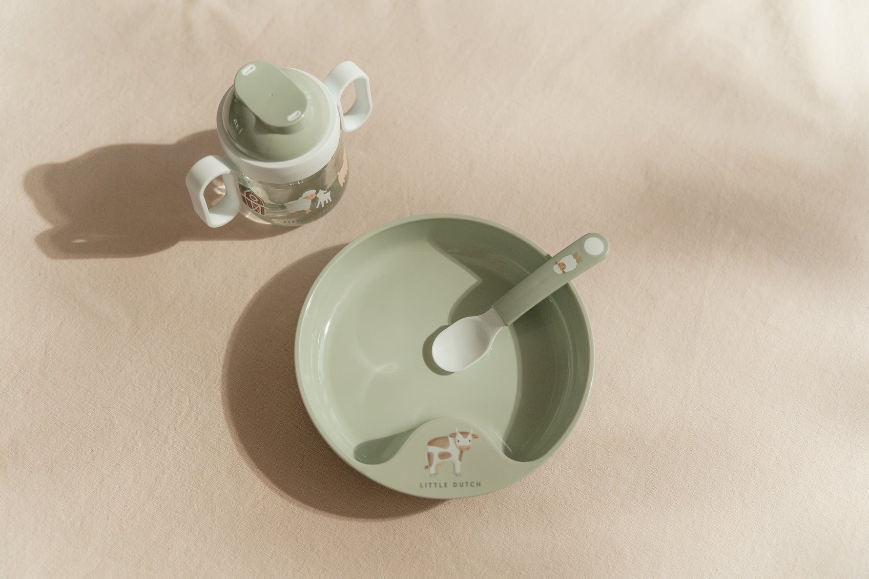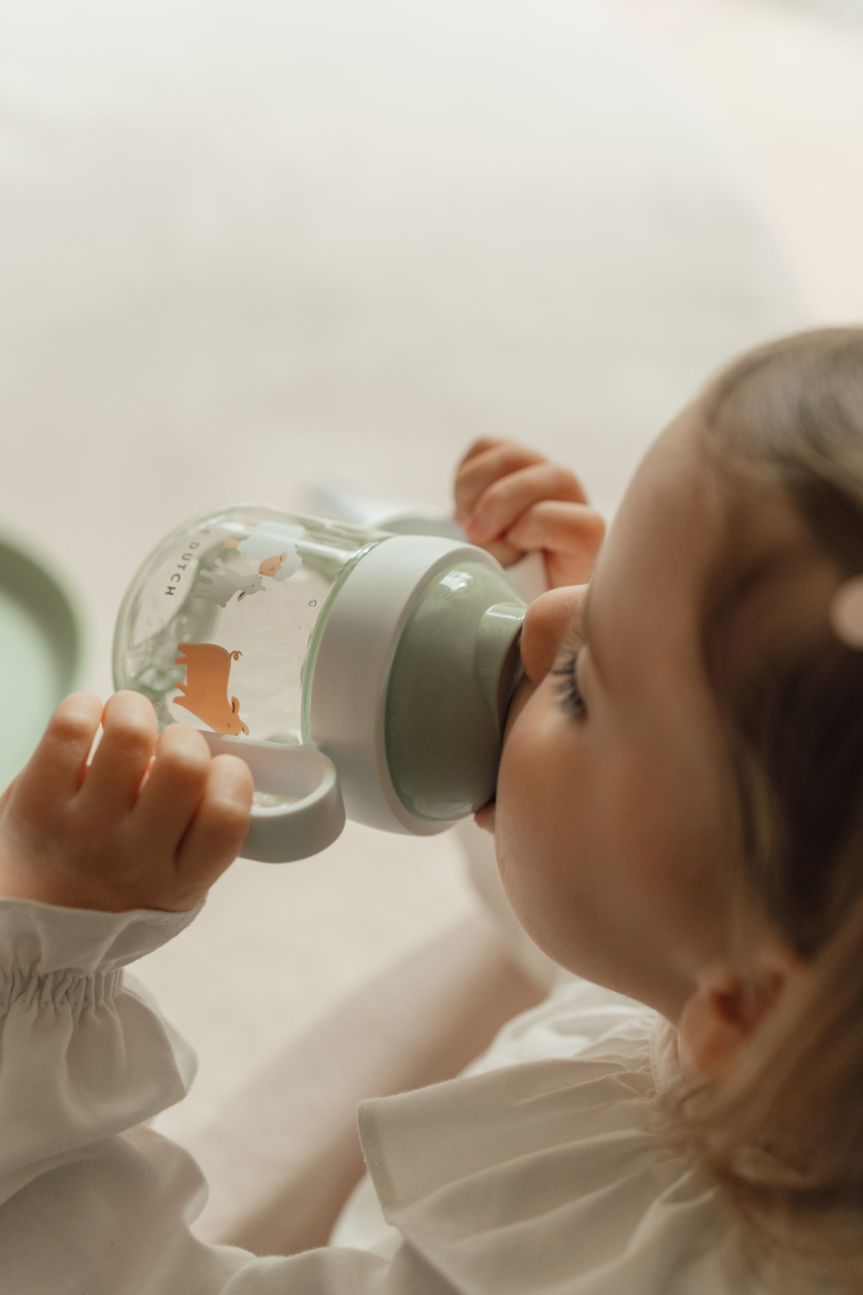 The 200 ml Mepal Mio non-spill sippy cup in the Little Farm design is perfect for children learning to drink independently. The drinking spout is made of soft material, while the handles offer a firm grip for little hands. The transparent lid makes the cup perfect for travelling and shows how much drink is left in it. Thanks to the leakproof design, everything stays clean and mess-free. The cup is made of durable, BPA-free material and easy to clean in the dishwasher. The cute Little Farm design with farm animals makes every drinking moment extra fun.