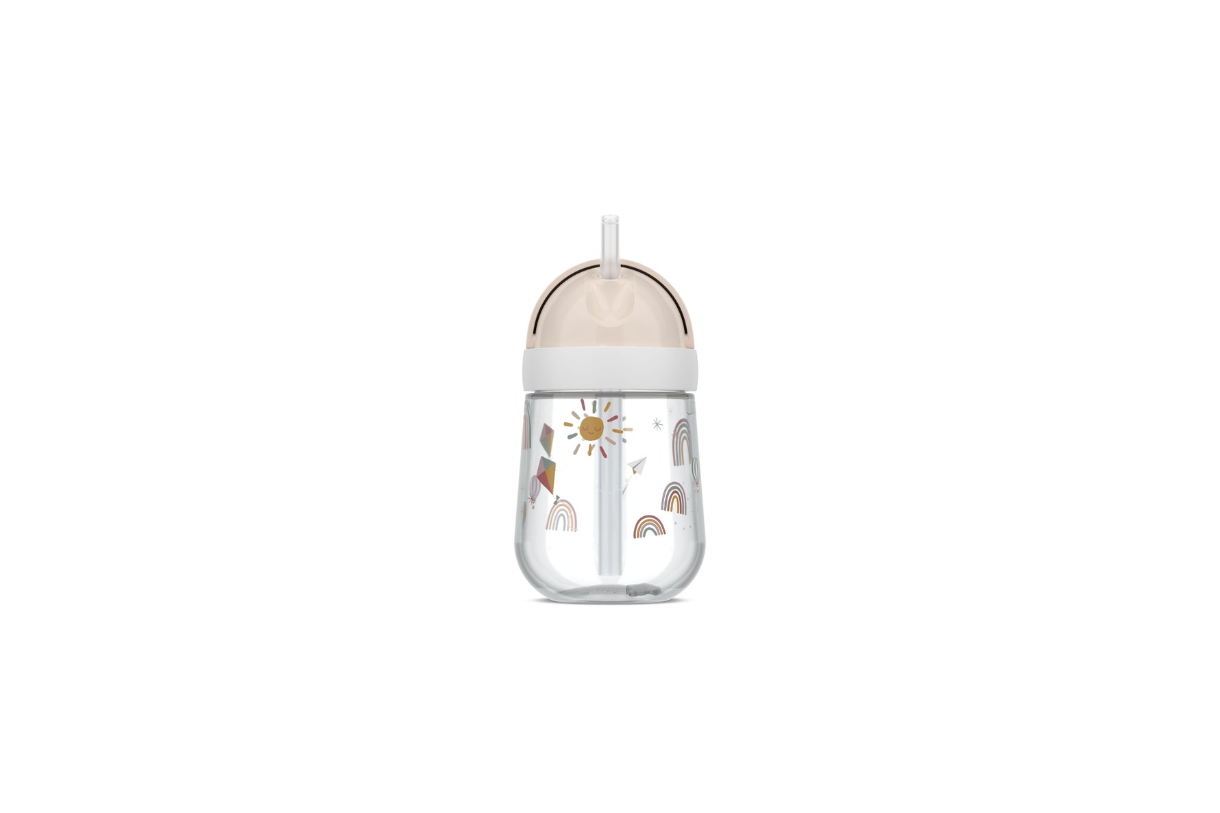 The Mepal Mio 300ml straw cup in Sunshine & Rainbow is your perfect travel partner. Hygienic and leakproof. Just slide open and the straw pops out, your child can just do it themselves! The cup is suitable for children from 9 months onwards and helps exercise and develop the jaw muscles. The cup is sturdy and easy to take apar. After use, the straw cup simply goes into the dishwasher and it is BPA-free.