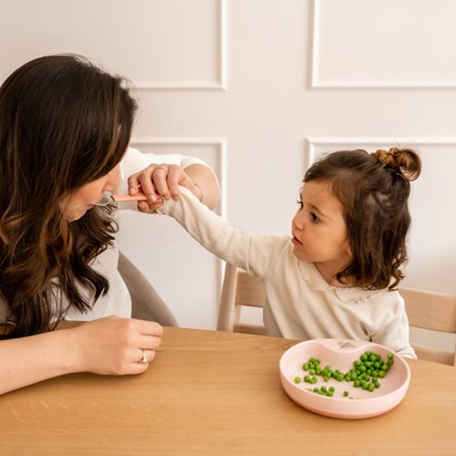 Eat or throw? That’s often the question. As soon as your baby starts to reach for your spoon or try to eat off your plate, it’s time for the Mepal Mio trainer plate. This set is perfectly designed for the first attempts of scooping and eating independently. The high raised edges, round corners and anti-slip base will help develop fine hand and mouth coordination. It might get messy and there will be some food throwing too, but as soon as you little one gets it, you will be so proud. The light pink plate has a smart grip illustrated with a butterfly of the Flowers & Butterflies collection.