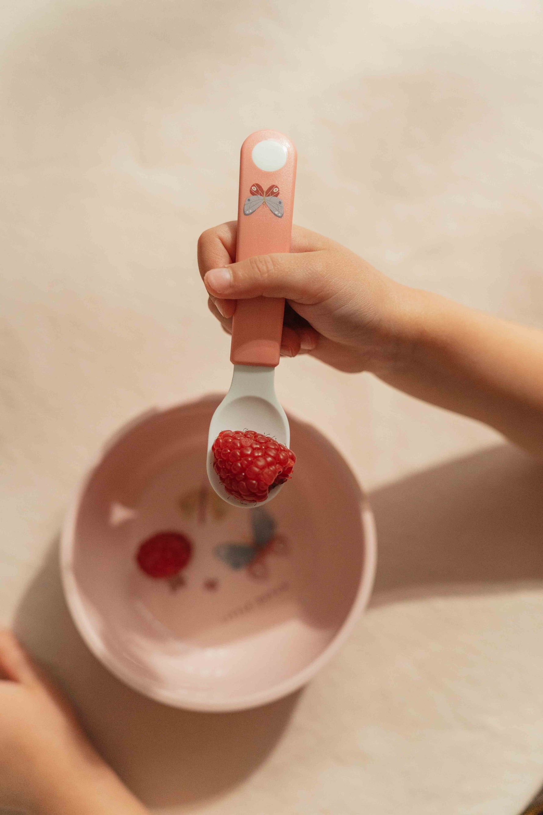 With this trainer spoons, learning to eat becomes a party! The spoons have a short handle so that your child can hold them easily. Thanks to the good grip, the spoons will not slip out of the child's hands. The spoons are dishwasher safe.