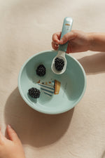 With this trainer spoons, learning to eat becomes a party! The spoons have a short handle so that your child can hold them easily. Thanks to the good grip, the spoons will not slip out of the child's hands. The spoons are dishwasher safe.