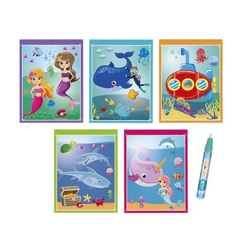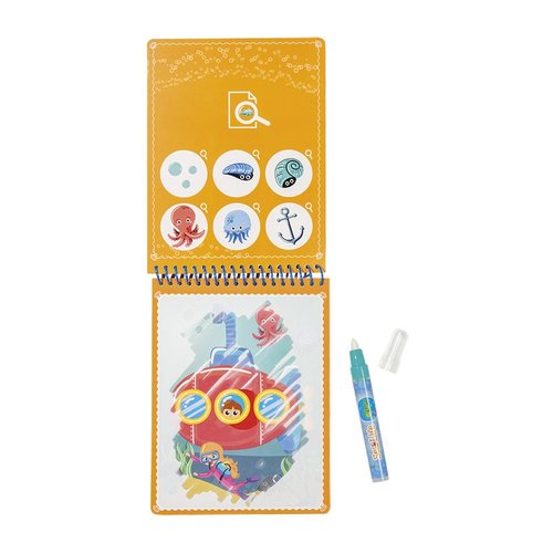 Discover how creative you can be with water and bring the underwater world to life. Ideal for little deep-sea divers, animal lovers and future artists! Fill the included special pen with water and start drawing. When water hits the paper, the most beautiful drawings of all your favorite wild animals appear. When the paper dries you can recreate the five drawings, so you can have fun again and again. Handy for at home and on the road!