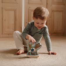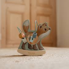 Let the beads spiral around the wooden fox as he rocks back and forth. Encouraging playful interaction, this charming toy invites you to give him a gentle push, setting him in motion to dance around the enchanted forest. In the shape of leaves, pinecones and mushrooms, the beads navigate the spiral path across the fox’s surface. A delightful fusion of Forest Friends entertainment and decor, this toy not only fosters motor skills but also adds a touch of magic to any playtime experience.
