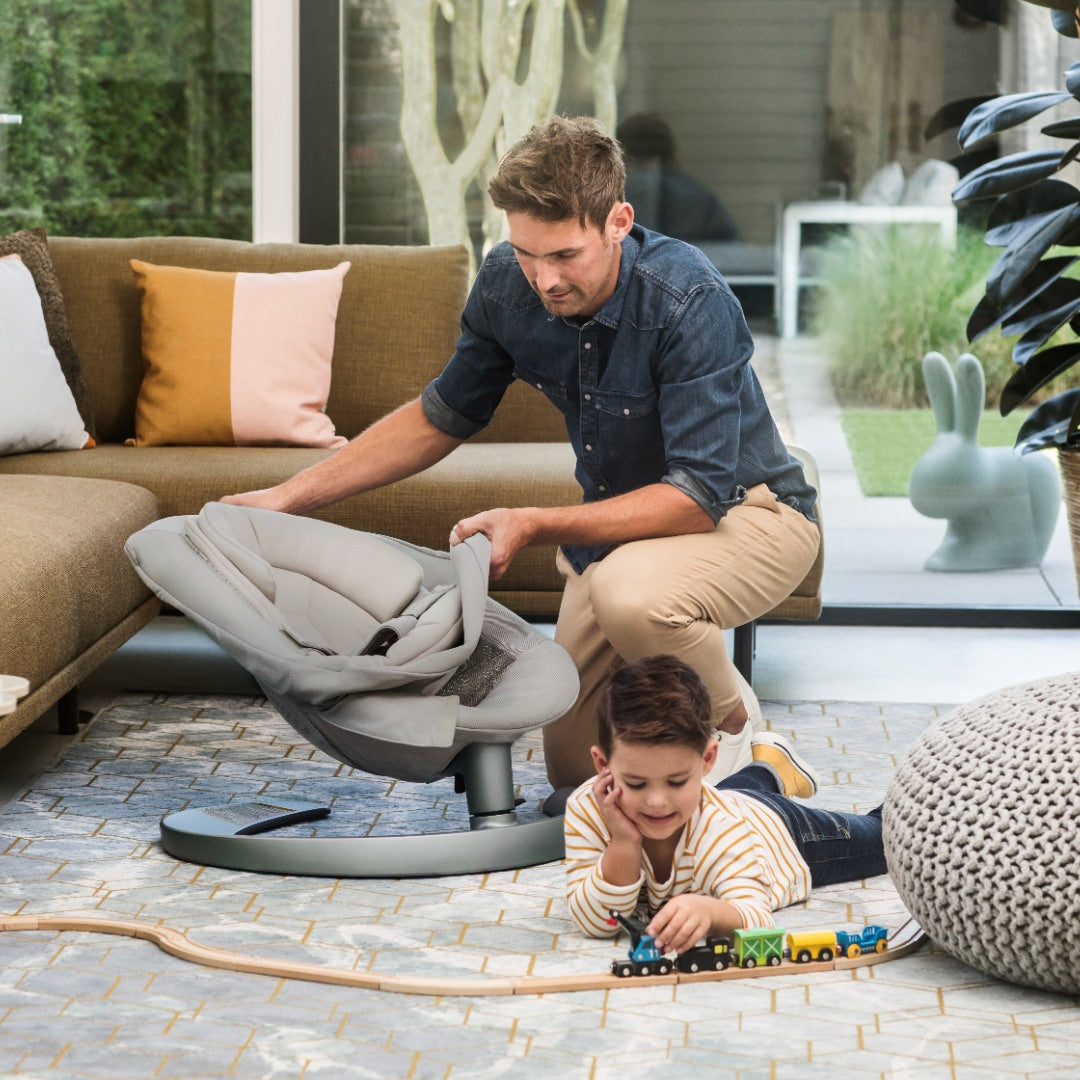 Inspired by the carefree float of a leaf in a gentle breeze, the LEAF grow bouncer seat features a unique, motorless sway. So baby can relax to its natural calming vibe or engage with fun toy bar friends, and you can enjoy a bit of me time while your tea is still warm.