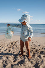 This green swim diaper Ocean Friends is specially designed for the littlest ones who can’t wait to explore the water. Available in three sizes for a perfect fit, it allows your baby to move freely while playing and splashing. The outside is made from soft waffle fabric, and the inside is lined with 100% polyester with a coating. This ensures a comfortable fit and keeps little accidents contained while swimming. The friendly underwater friends make the print extra fun. Pair the swim diaper with a matching swim shirt or cap and your little one is all set for a carefree summer day full of joy. Don’t forget to apply sunscreen to protect your child.