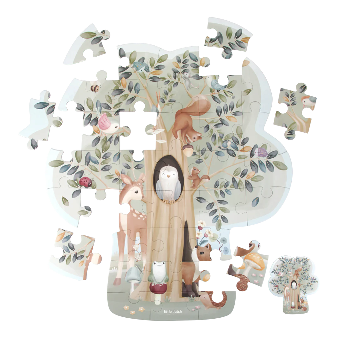 Embark on a magical journey with the majestic tree floor puzzle! As you piece together the tree, you'll uncover the wonderful creatures that call it home. Peek between the branches to spot squirrels gathering acorns, birds building their nests, and insects buzzing about. Can you find where the friendly fox is hiding? This puzzle isn't just fun—it's a great way to build concentration and hand-eye coordination. So, grab a cozy spot, sit down, and let the forest magic unfold with 37 pieces. What wonders will you discover as the puzzle comes together?